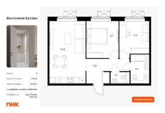 1-к, Восточное Бутово ЖК, 41 Показать на карте