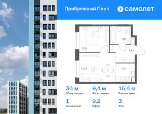 Предлагается 1-комнатная квартира комфорт-класса 33,9 кв.м в корпусе 8.3 на 12 этаже, в ЖК ''Прибрежный Парк''Квартира с чистовой отделкой. Доступность дополнительных опций уточняйте у застройщика.Приобрести квартиру возможно по специальным акциям от застройщика, с текущими условиями акций можно ознакомиться в блоке Акций.Цена динамическая и может отличаться, уточняйте актуальность у застройщика.Жилой комплекс ''Прибрежный Парк'' находится в 9 км от МКАДа. Корпуса проекта — дома высотой 1217 этажей с комбинированными фасадами из кирпича и фиброцементных плит. Территорию ''Прибрежного Парка'' огибает река Пахра, рядом располагается Видновский парк. Здесь можно кататься на велосипедах, заниматься бердвотчингом, устраивать пикники на лужайках и любоваться деревьями из окон квартиры. Внутри проекта появятся спорткомплекс с бассейном, поликлиника, школа и 3 детских сада, один из которых уже открыт. Оставить авто можно на паркинге за пределами жилого комплекса. Выбрать ''Прибрежный Парк'' — значит сделать ставку на комфортную жизнь в окружении природы.''Прибрежный Парк'' — это:1. До МКАДа — 9 км2. 15 минут ходьбы до ж/д станции Ленинская и 25 минут на авто до аэропорта Домодедово 3. Коробовский и Богдановский лес, река Пахра и Большой Людовинский пруд у дома4. Школа и детский сад уже построены5. Запланировано строительство спорткомплекса с бассейном, поликлиника, школа и 3 детских сада6. В будущем клинический госпиталь ''Мать и дитя'' — рядом с домом7. Благоустроенная пешеходная набережная внутри проекта — в планах8. Всесезонная игровая площадка PlayHub для детей всех возрастов9. Безопасные игровые и спортивные площадки10. Колясочные и кладовые 11. Безбарьерные входы в подъезды12. Магазины и кофейни на первых этажах домов13. Догхабы, лужайки, воркаут-пространства 14. Паркинг — за территорией комплекса