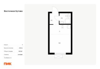 Продаётся квартира-студия площадью 25,1 кв.м на 25 этаже 25 этажного дома (Корпус 17, Секция 1) проекта ПИК ''Восточное Бутово''. Светлый просторный подъезд на уровне земли, функциональная планировка, большие окна, c отделкой. Жилой квартал ''Восточное Бутово'' расположен в 5 км от МКАД по Симферопольскому шоссе, в Ленинском районе Московской области. Это экологически благоприятное место по соседству с Бутовским лесопарком. В 25 минутах на машине - станции метро и МЦД ''Бутово''. В ''Восточном Бутово'' уже открылись пять детских садов из десяти запланированных и одна школа из четырёх. Внутри квартала будет две поликлиники, одна из которых уже работает. В проекте два пешеходных бульвара - по одному из них уже можно гулять и кататься на велосипеде. В закрытых дворах-парках не будет автомобилей - мы построим многоуровневый паркинг, чтобы сделать район ещё более комфортным и безопасным для жителей. Артикул 618145 (Застройщик ООО ''Лотан'')