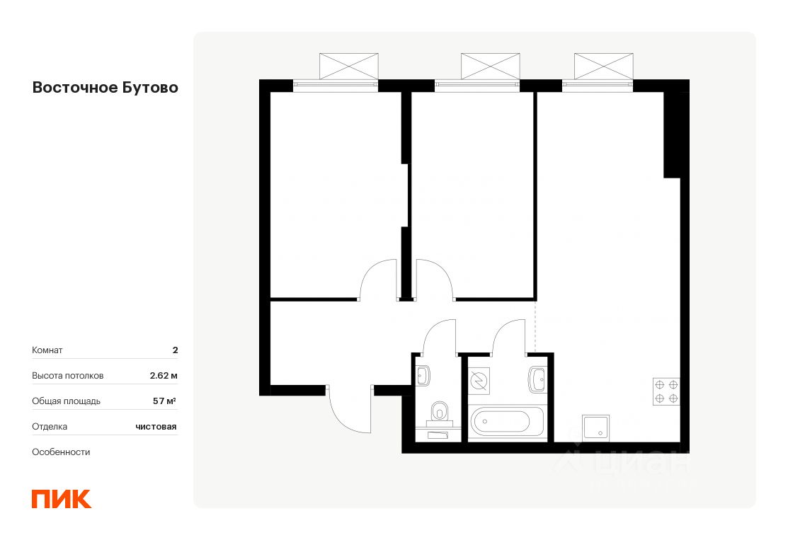 Продаётся 2-комн. квартира площадью 57 кв.м на 13 этаже 25 этажного дома (Корпус 42, Секция 4) проекта ПИК Восточное Бутово. Светлый просторный подъезд на уровне земли, функциональная планировка, большие окна, .