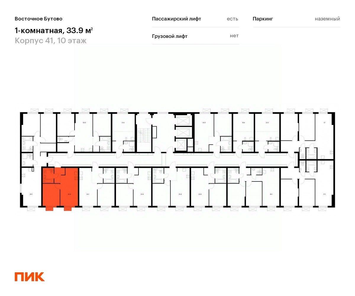 Продаётся 1-комн. квартира площадью 33,9 кв.м на 10 этаже 25 этажного дома (Корпус 41, Секция 3) проекта ПИК Восточное Бутово. Светлый просторный подъезд на уровне земли, функциональная планировка, большие окна, .