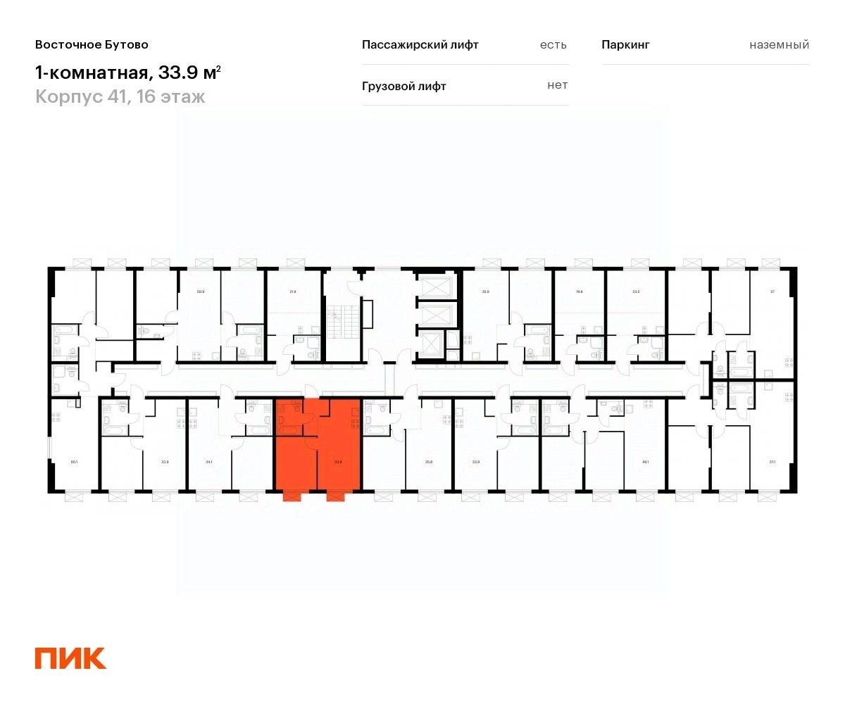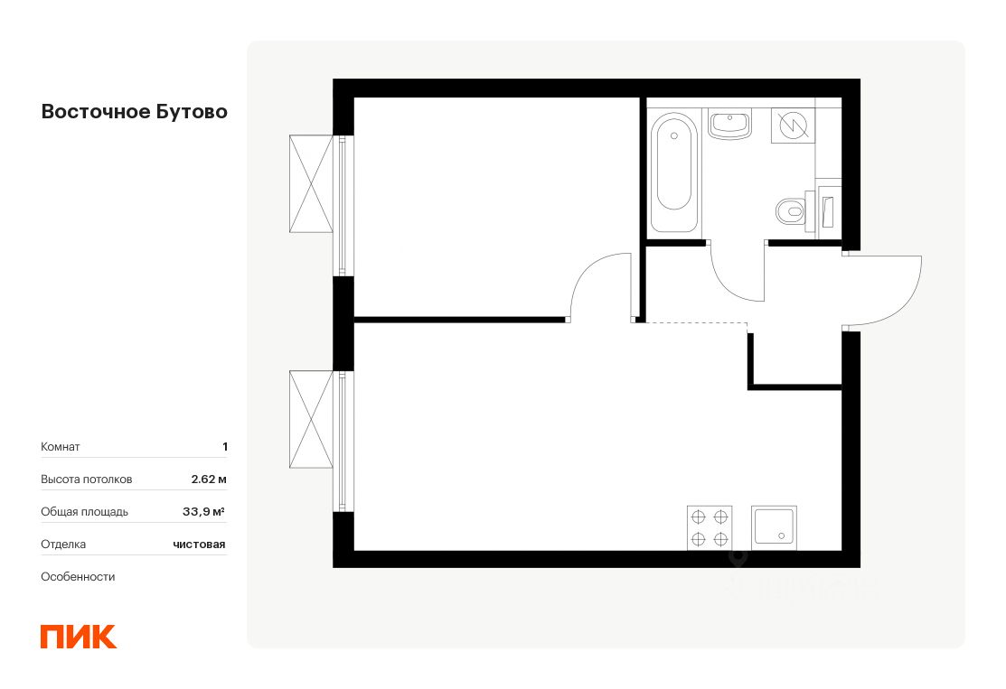 Продаётся 1-комн. квартира площадью 33,9 кв.м на 16 этаже 25 этажного дома (Корпус 41, Секция 3) проекта ПИК Восточное Бутово. Светлый просторный подъезд на уровне земли, функциональная планировка, большие окна, .