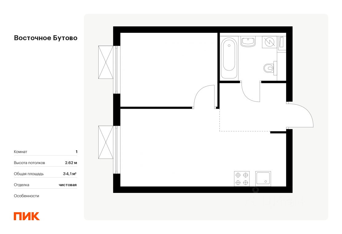 Продаётся 1-комн. квартира площадью 34,1 кв.м на 13 этаже 16 этажного дома (Корпус 41, Секция 2) проекта ПИК Восточное Бутово. Светлый просторный подъезд на уровне земли, функциональная планировка, большие окна, .