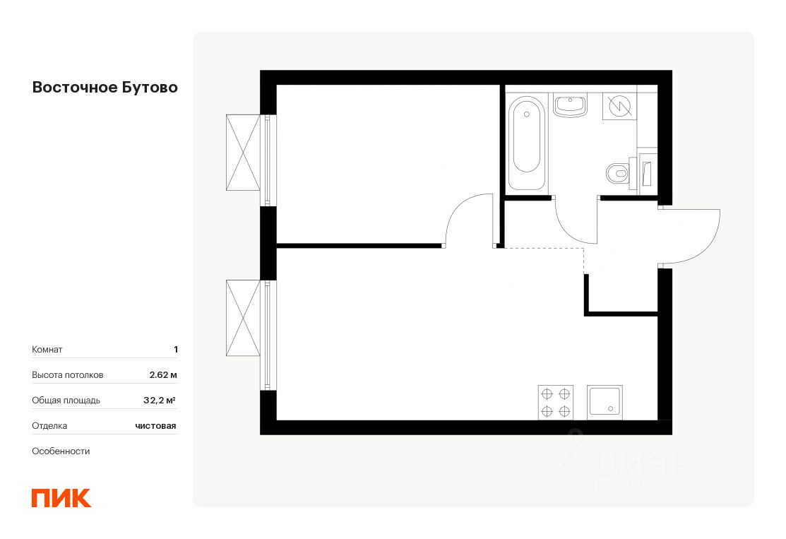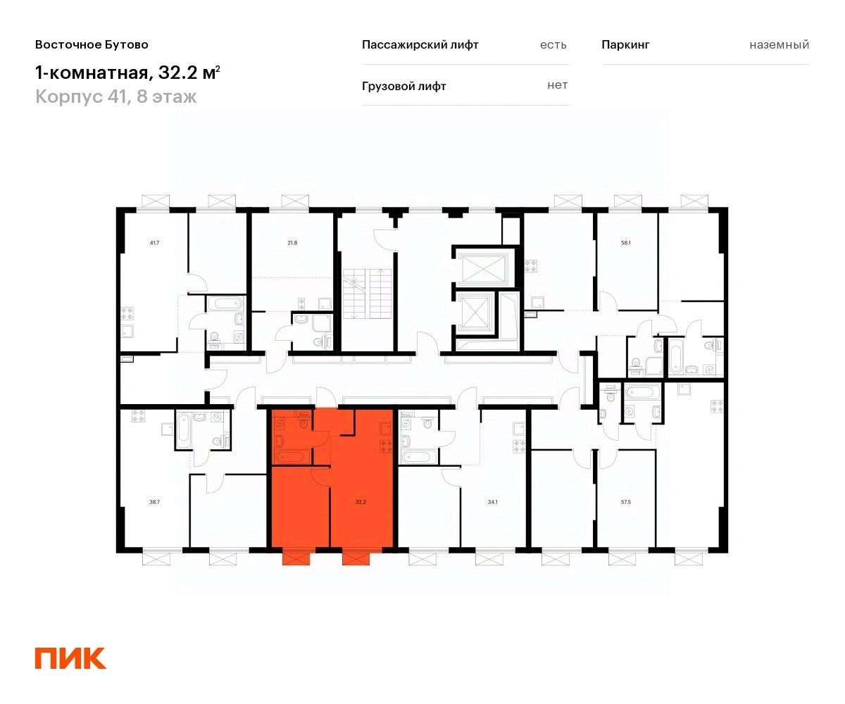 Продаётся 1-комн. квартира площадью 32,2 кв.м на 8 этаже 16 этажного дома (Корпус 41, Секция 2) проекта ПИК Восточное Бутово. Светлый просторный подъезд на уровне земли, функциональная планировка, большие окна, .