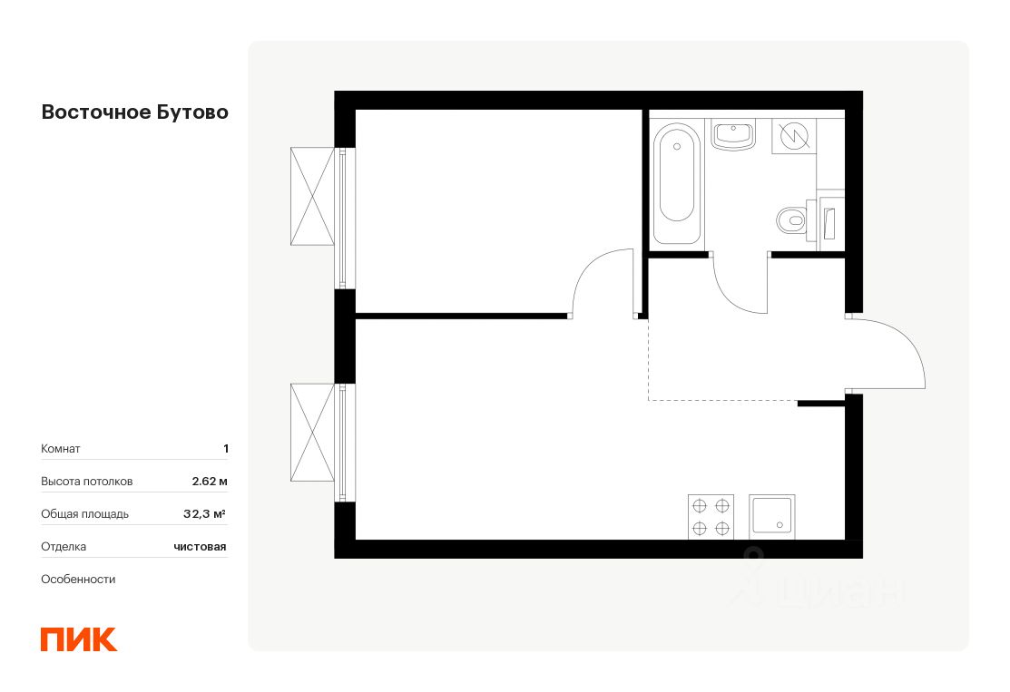 Продаётся 1-комн. квартира площадью 32,3 кв.м на 12 этаже 16 этажного дома (Корпус 42, Секция 1) проекта ПИК Восточное Бутово. Светлый просторный подъезд на уровне земли, функциональная планировка, большие окна, .