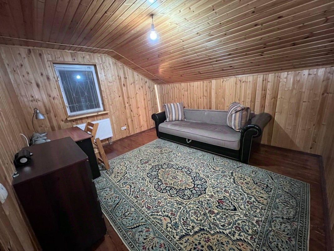 Продаётся жилой двухэтажный дом (прописка) в СНТ ''Мещерское'' Чеховского района Московской области (45 км от МКАД по Симферопольскому шоссе). Дом (170м2) для круглогодичного проживания: стены - брус с утеплением, облицован кирпичом, фундамент ленточный на монолитной плите (углублён на 1,7м), крыша металлочерепица. Вокруг дома проложена дренажная система. Внутри стены обиты вагонкой. Ухоженный участок - 4 сотки. Коммуникации: природный газ (двухконтурный котёл с разводкой по дому),электричество- 15 кВт, вода- скважина (48 м), канализация - септик. 1этаж: прихожая, котельная, столовая, кухня, спальня, сан/узел, 2 этаж 3 спальни, туалет, кладовка. СНТ расположено в экологически чистом районе Подмосковья, вокруг живописный грибной лес. Дороги асфальтированные (зимой регулярно чистят), круглосуточная охрана с пропускной системой, въезд через шлагбаум, регулярный вывоз мусора. Удобный выезд на Симферопольского шоссе. В шаговой доступности находится автобусная остановка и продуктовый магазин.