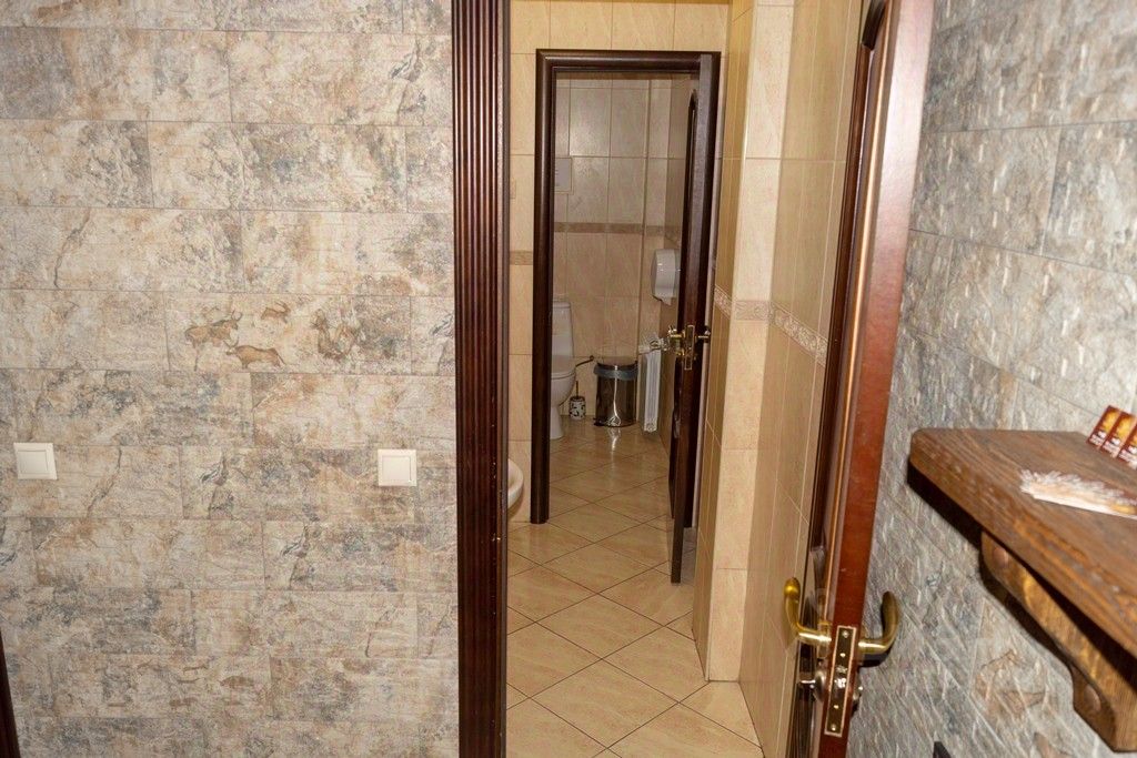 Во дворе есть отдельно стоящее здание хоз. блок 86 кв.м., также с документами НА ПРАВО СОБСТВЕННОСТИ, который имеет 6 кабинетов, в которых находится кабинет директора, бухгалтерия, большая морозильная камера, кабинеты для отдыха персонала, душевые, комната для стиральных машин и глажки белья, также во дворе есть кладовка размером 40 кв.м., половина двора находится под крышей, есть парковка для автомашины, все территория находится за раздвижными воротами, за основным зданием ресторана