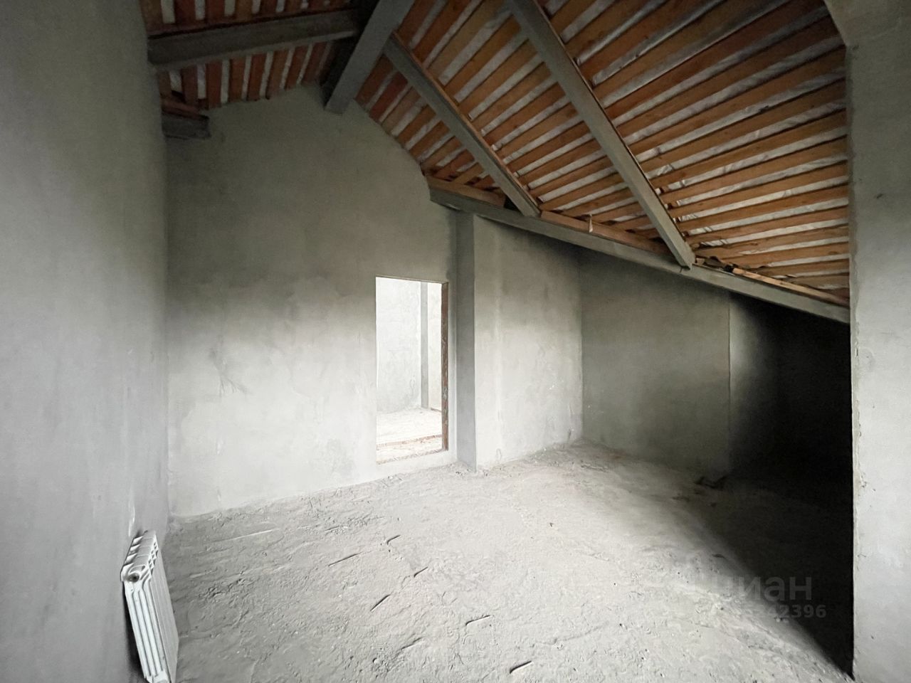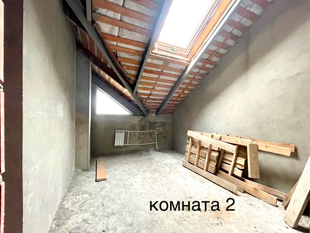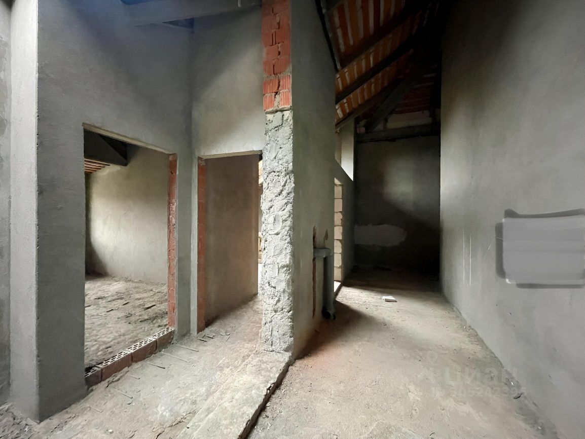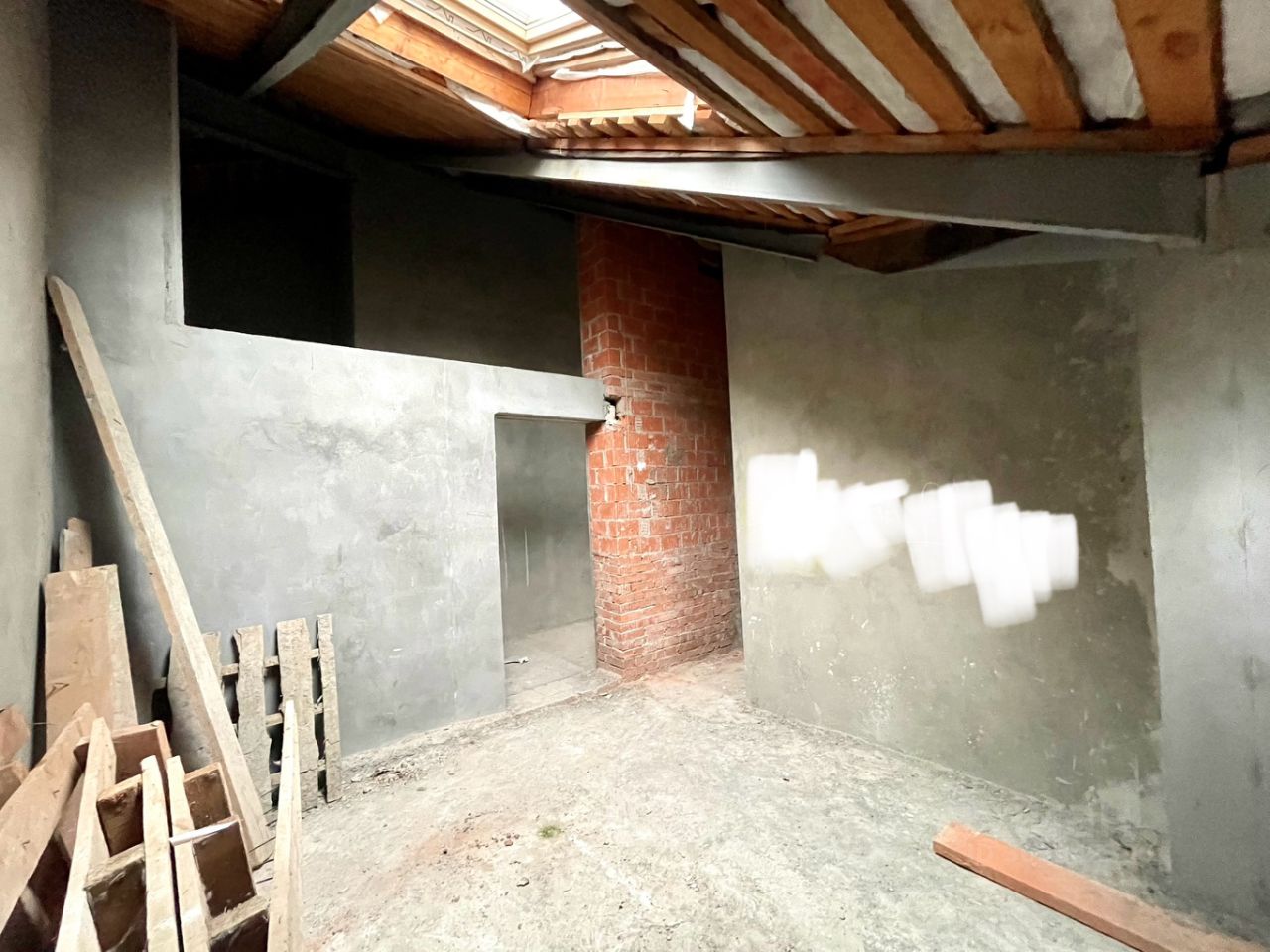 Железная лестница на второй этаж залита стяжка на первом и втором уровне, оштукатурены стены.