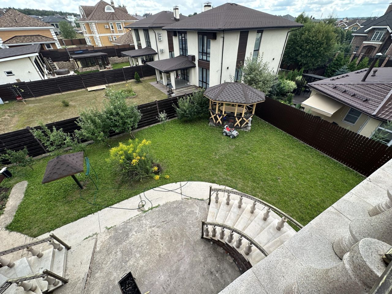 БЕЗ комиссии! Аренда загородного дома в Престижном строго охраняемом коттеджном поселке ''Русская деревня''. В доме есть отдельная комната для персонала с санузлом. В доме 6 спален, 4 санузла. ПЛАНИРОВКА ДОМА: Цокольный этаж: постирочная, котельная. Между цоколем и 1-ым этажом: комната для персонала со своим санузлом/либо гостевая спальня, а также напротив комнаты вход в теплый гараж из дома. 1 этаж: просторный холл с гардеробной, большая гостиная с выходом на летнюю веранду, кухня-столовая с выходом на террасу. 2 этаж: спальня с санузлом (ванна) и гардеробной и выходом на балкон, 3 спальни, санузел (ванна). 3 этаж: спальня со своей гардеробной комнатой и своим санузлом. На участке есть зона парковки перед гаражом на 2 м/м.