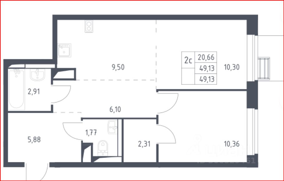 Общая площадь49 м2