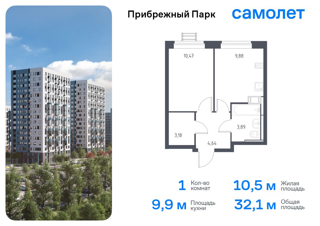 Предлагается 1-комнатная квартира комфорт-класса 31,5 кв.м в корпусе 9.1 на 3 этаже, в ЖК ''Прибрежный Парк'' Квартира с предчистовой отделкой. Доступность дополнительных опций уточняйте у застройщика.