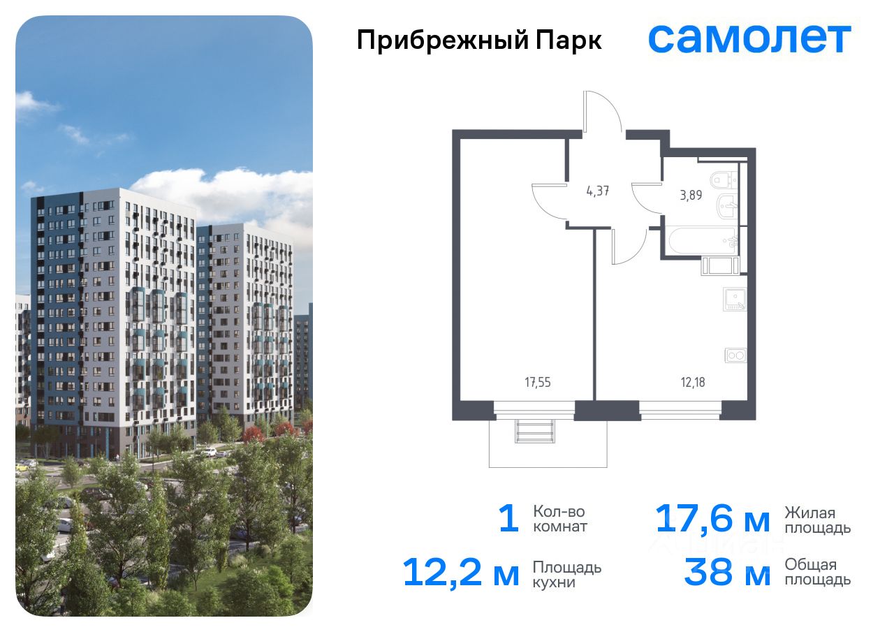 Предлагается 1-комнатная квартира комфорт-класса 37,5 кв.м в корпусе 9.1 на 5 этаже, в ЖК ''Прибрежный Парк'' Квартира с чистовой отделкой. Доступность дополнительных опций уточняйте у застройщика.