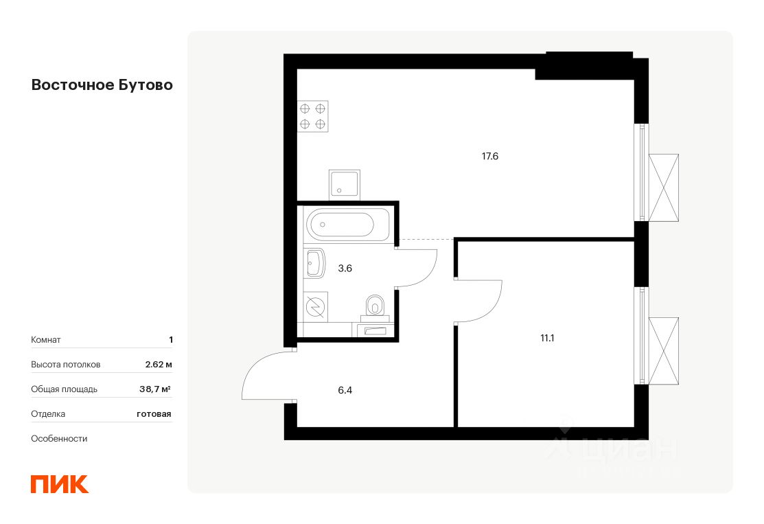 Продаётся 1-комн. квартира площадью 38,7 кв.м на 12 этаже 16 этажного дома (Корпус 41, Секция 1) проекта ПИК Восточное Бутово. Светлый просторный подъезд на уровне земли, функциональная планировка, большие окна, c отделкой.