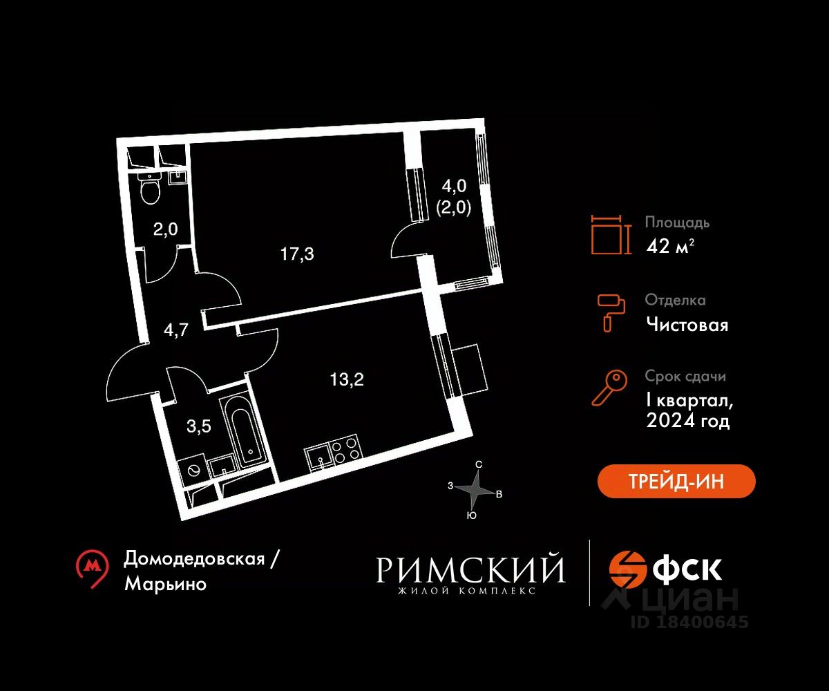Особенности: - Квартира доступна к покупке в Trade-In. - Просторная спальня, в которой можно разместить большую кровать. - Линейная планировка - максимальная функциональность и удобство. - Гостевой санузел - комфорт и удобство для ваших гостей. - Можно оборудовать рабочее место - комфорт для работы и учёбы. - Гибкая планировка - создайте пространство по своему вкусу. - Стандартное количество квартир на этаже - оптимальный выбор для городской жизни. - Лоджия - уютное место для отдыха и тишины.
