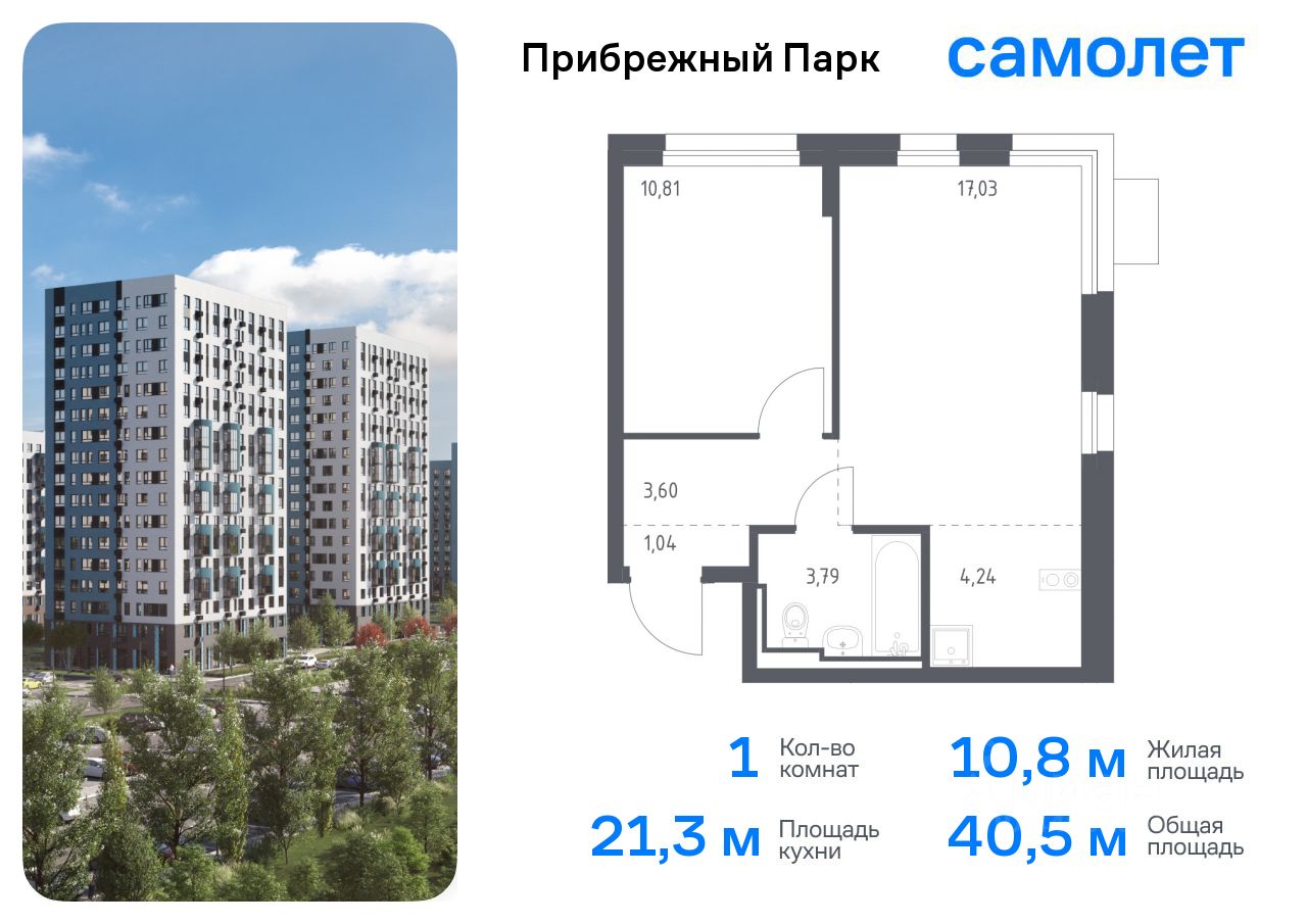 Предлагается 1-комнатная квартира комфорт-класса 40,51 кв.м в корпусе 7.1 на 6 этаже, в ЖК ''Прибрежный Парк'' Квартира без отделки. Доступность опции ''отделка'' и возможность комплектации мебелью и декором уточняйте у застройщика.