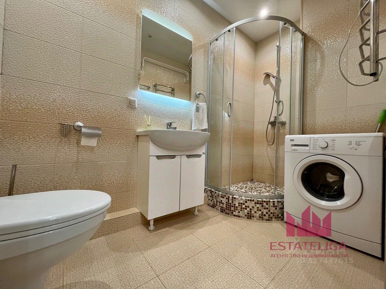 В квартире есть все необходимое для комфортного проживания. Кухонный гарнитур, варочная панель, стиральная машина, большой гардеробный шкаф.