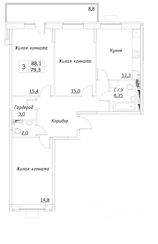 Продается полностью готовая 3-комн. квартира площадью 88,1 кв.м. (79,3 кв.м. без учета балкона) в новом доме ЖК Шоколад. Просторная кухня 12,3 кв.м., Квартира светлая, в теплых тонах, вид из окон во двор и на улицу. Балкон застеклен, площадью 8,8 кв.м. Квартира передается с полной отделкой под ключ. Подъезды в ЖК — без барьерная среда — удобная и безопасная для детей и взрослых, пожилых и малоподвижных людей, т.к. входы во всех подъездах располагаются на уровне земли, без ступеней и других препятствий. Во входных группах предусмотрены зоны для хранения колясок и место для консьержа, так же в каждом подъезде два лифта - грузовой и пассажирский. Подъезды сквозные: можно быстро выйти из дома и во двор, и на улицу.