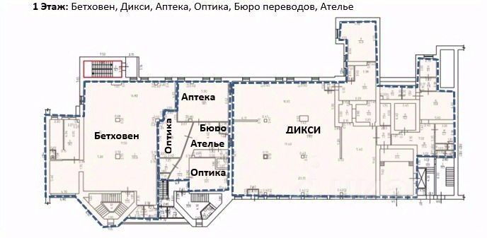 Арендаторы 1 этажа кроме ДИКСИ, Торговый зал с Аптекой и Оптикой. 2 и 3 этаж занимает Спортмастер.