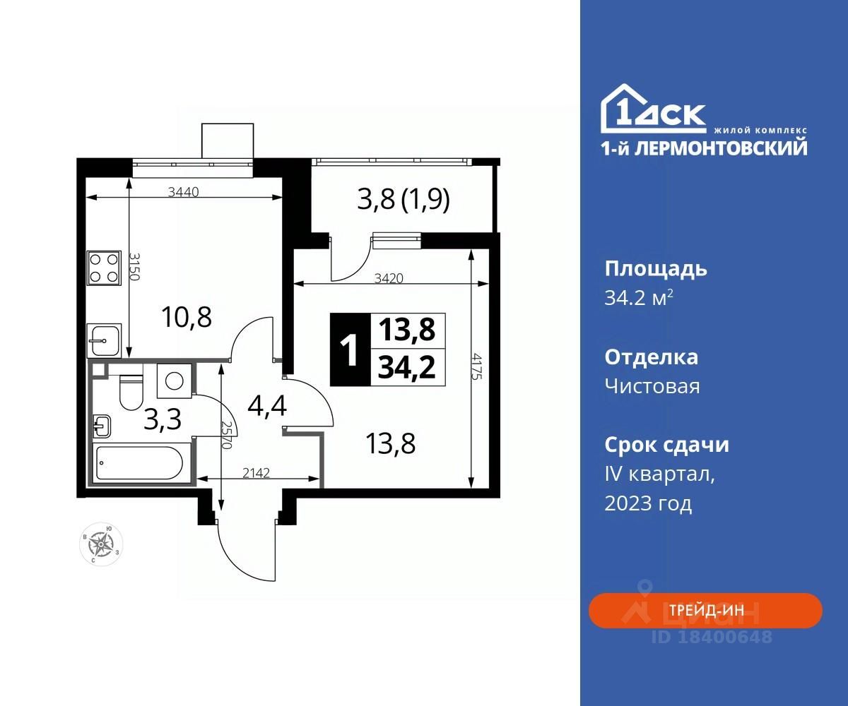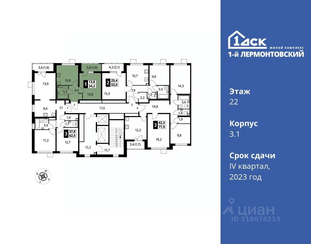Максимальные скидки при 100% оплате. Корпус сдан! Прямая продажа от застройщика! Жилой Комплекс класса Комфорт плюс. Продаётся 1-к квартира номер 82 в сданном корпусе общей площадью 34.2 кв.м на 22-м этаже 24 этажного дома.