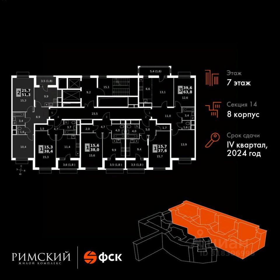 Максимальные скидки при 100% оплате. Готовый дом! Прямая продажа от застройщика! Жилой Комплекс класса Комфорт. Продаётся 2-к квартира номер 810 в сданном корпусе общей площадью 51.8 кв.м на 7-м этаже 16 этажного дома.