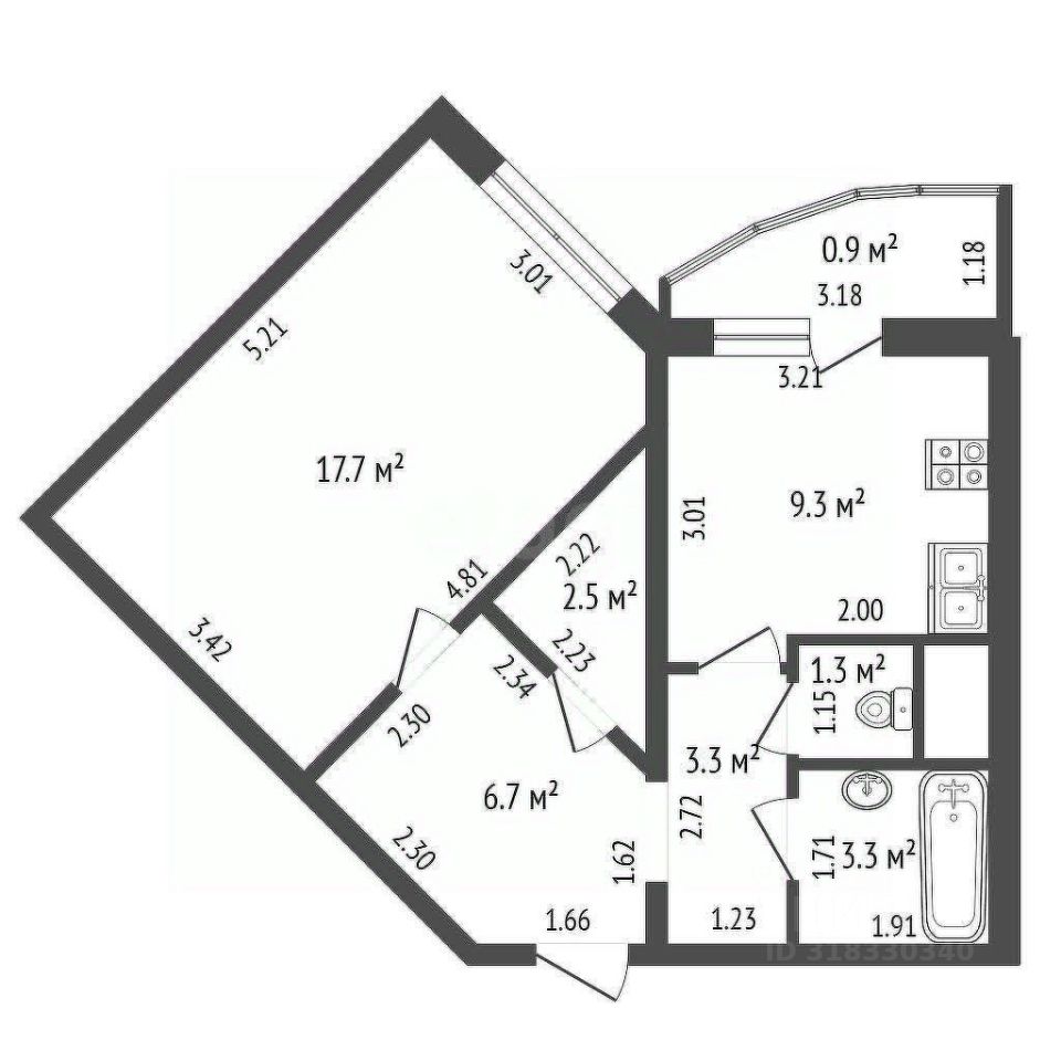Эта квартира с продуманной планировкой включает в себя изолированную комнату, просторный балкон, кухню, кладовую, раздельный санузел и широкий коридор.