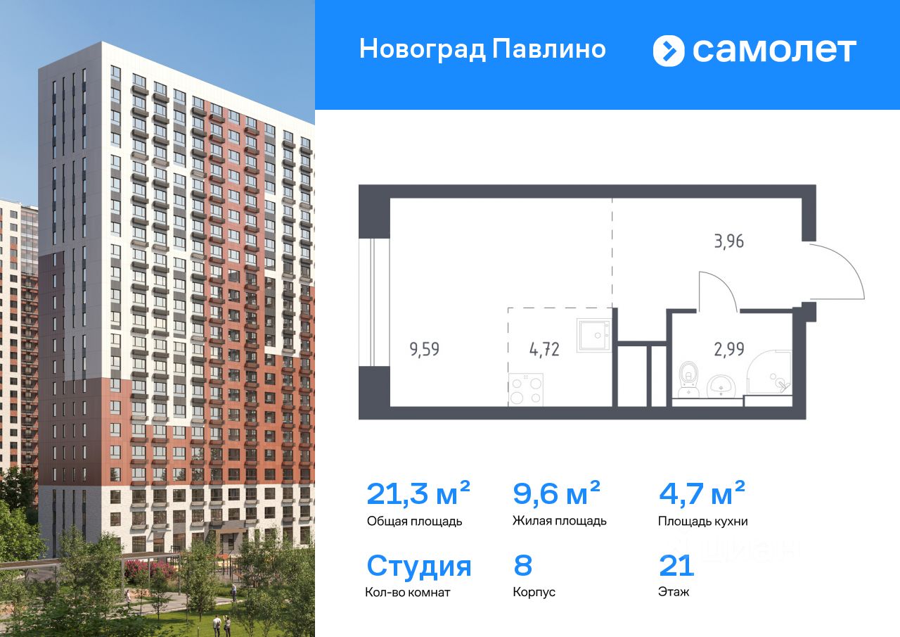 Строим кварталы для жизни с заботой о будущем. Предлагается квартира студия комфорт-класса 21 кв.м в корпусе 8 на 21 этаже, в ЖК ''Новоград Павлино'' Квартира без отделки. Доступность опции ''отделка'' и возможность комплектации мебелью и декором уточняйте у застройщика.