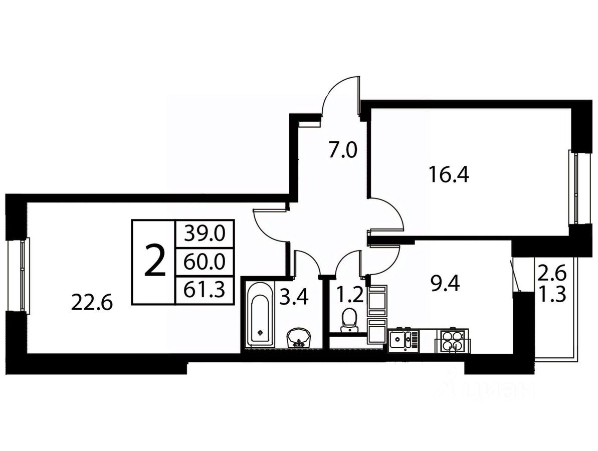 Общая площадь61,3 м2
