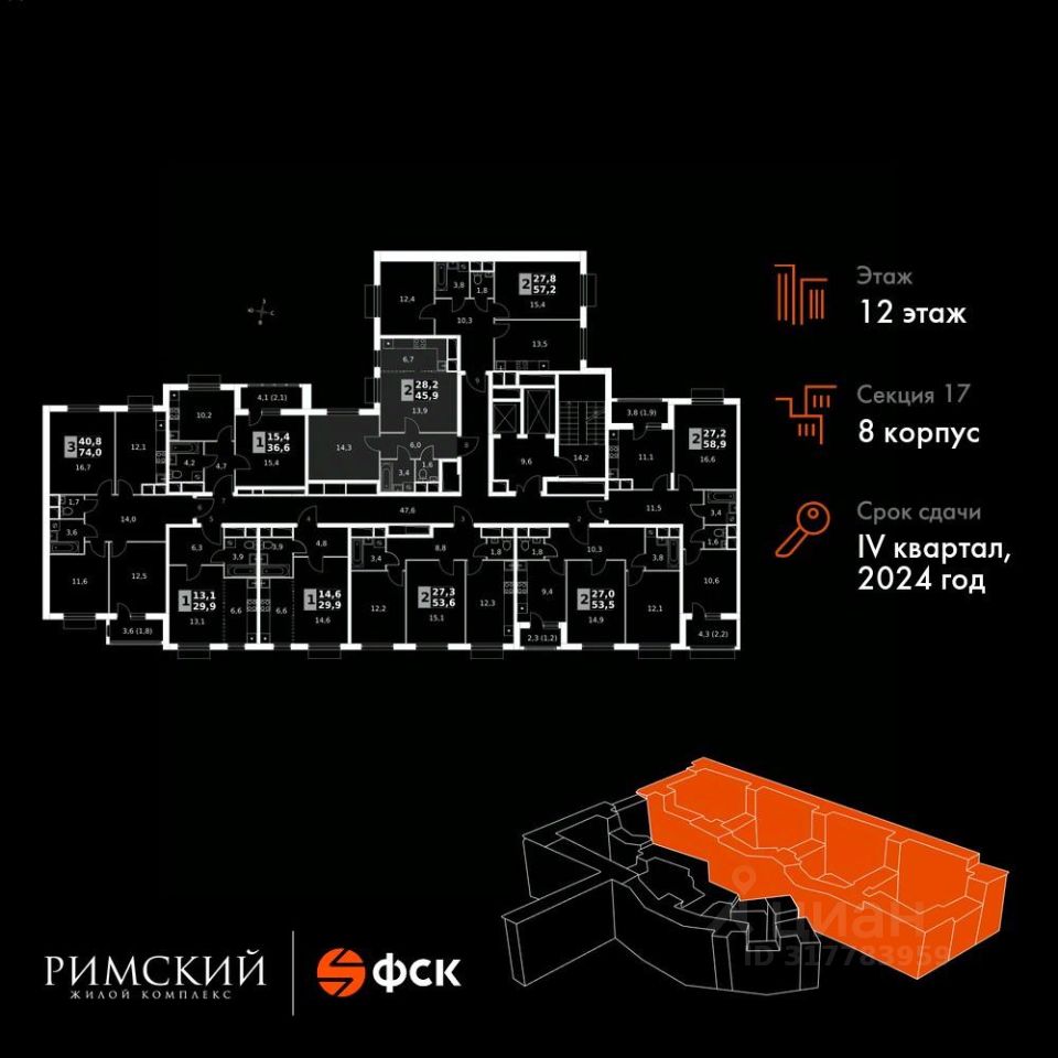 Максимальные скидки при 100% оплате. Готовый дом! Прямая продажа от застройщика! Жилой Комплекс класса Комфорт. Продаётся 2-к квартира номер 1146 в сданном корпусе общей площадью 46.4 кв.м на 12-м этаже 16 этажного дома.