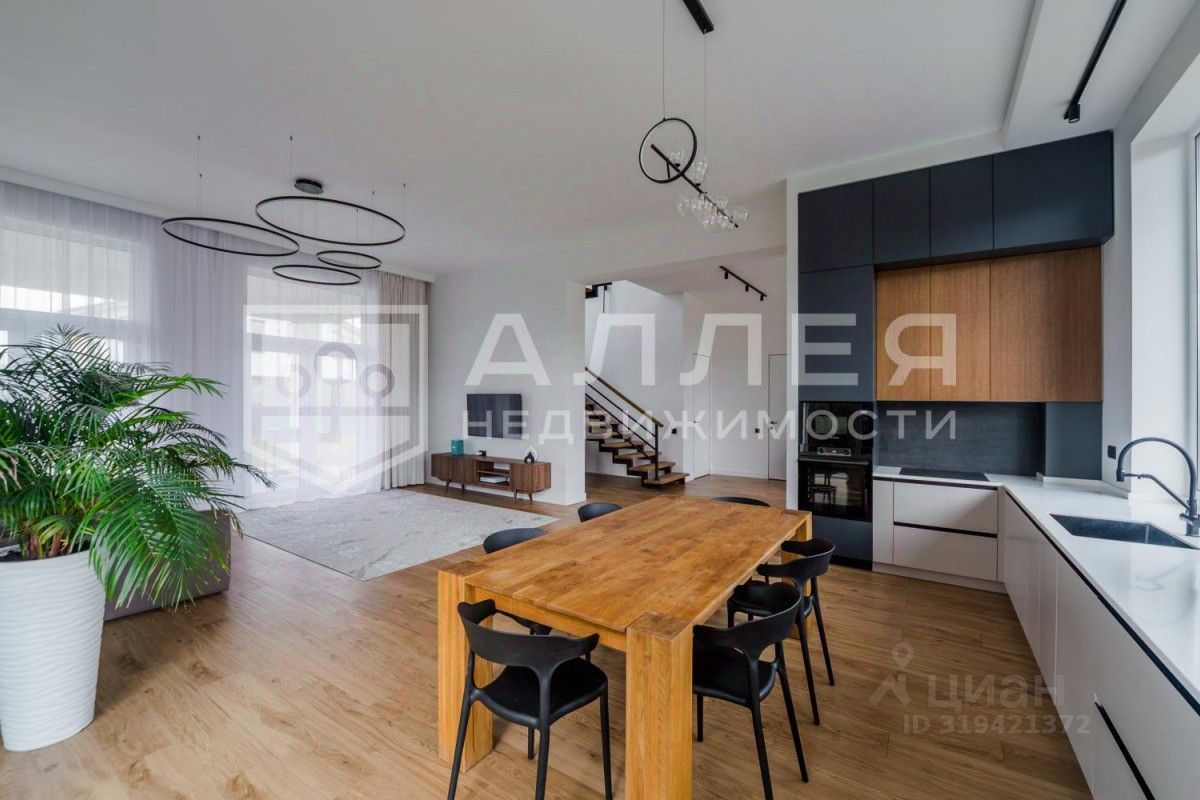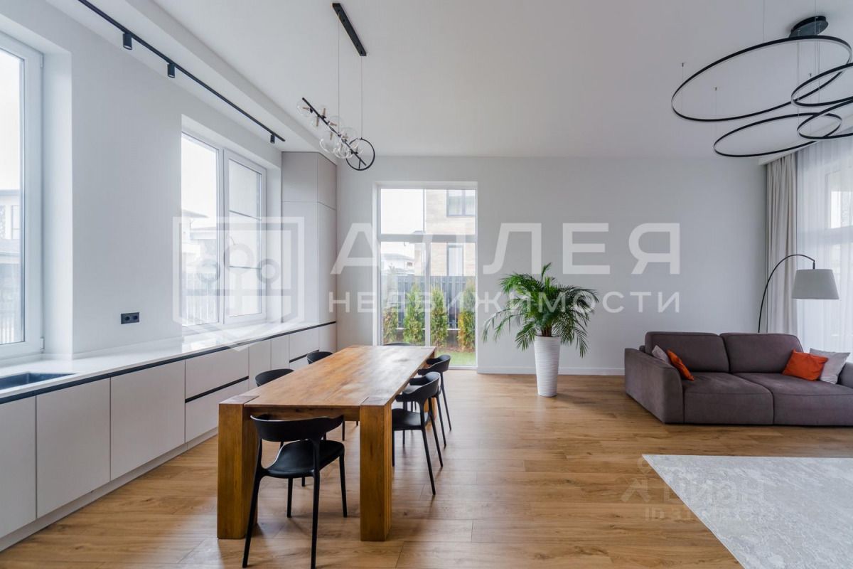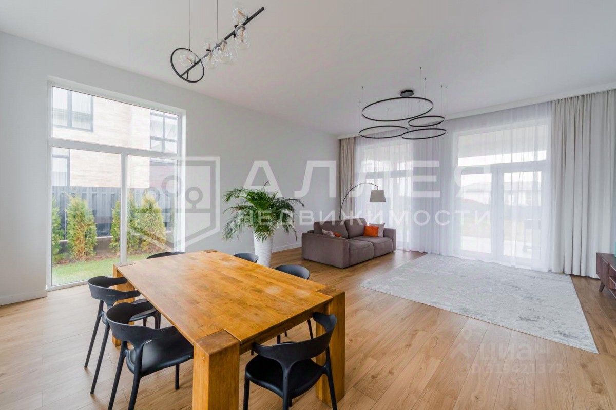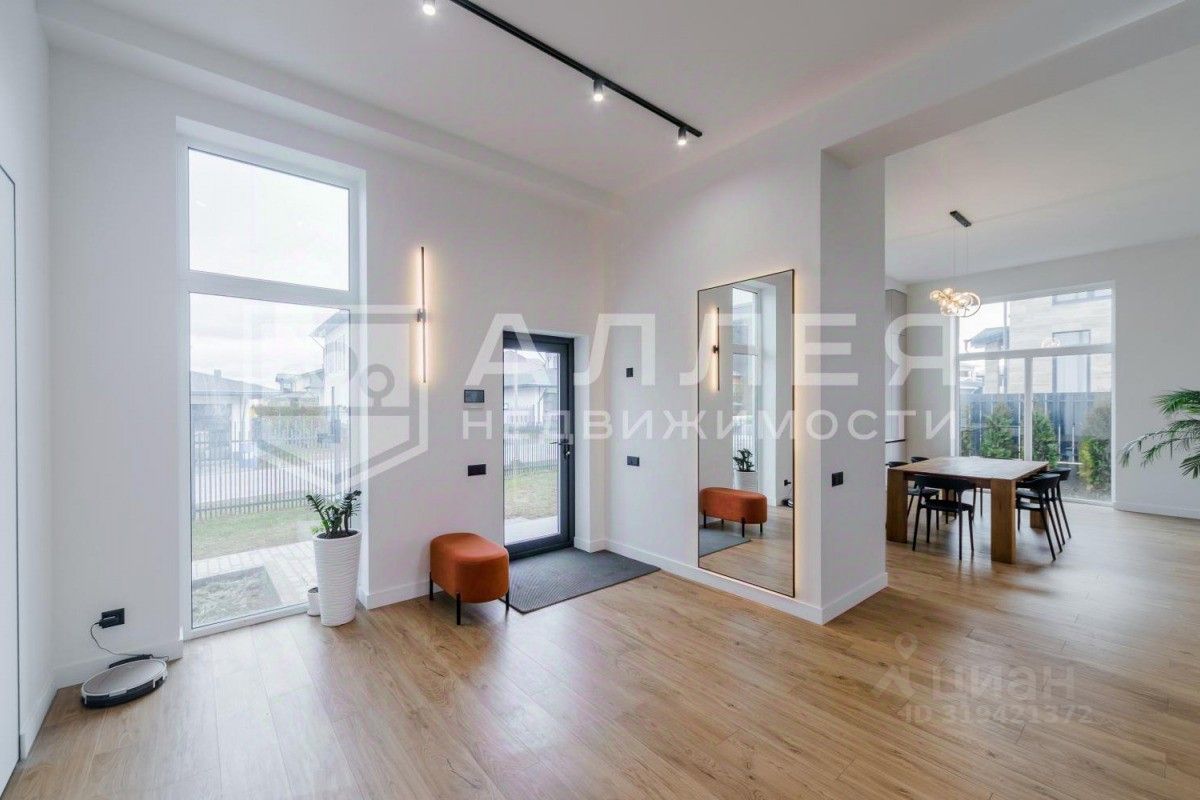 ДОМ: Дом новый. Сделана большая открытая гостиная - кухня - столовая с высокими потолками 3.5 м. и панорамными окнами в пол. С террасы открывается красивый вид на участок. Есть спальня на первом этаже для гостей или родителей. Сделана современная отделка и планировка. Установлены водяные теплые полы, стены оштукатурены. В мастер - спальне отдельный санузел, гардеробная и большой балкон. Дом полностью меблирован и готов к проживанию. Гараж отапливаемый.