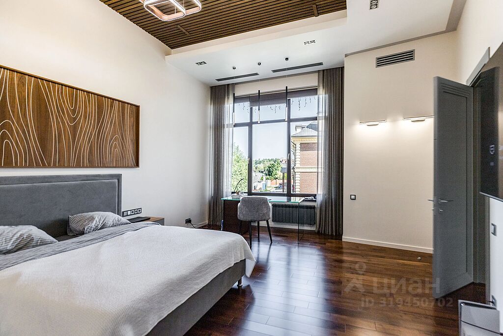 На втором этаже расположены три спальни и кабинет с индивидуальными гардеробными и ванными комнатами, а также спальня с отдельной лестницей и собственной кухней (может использоватьс как гостевое пространство или зона для персонала)