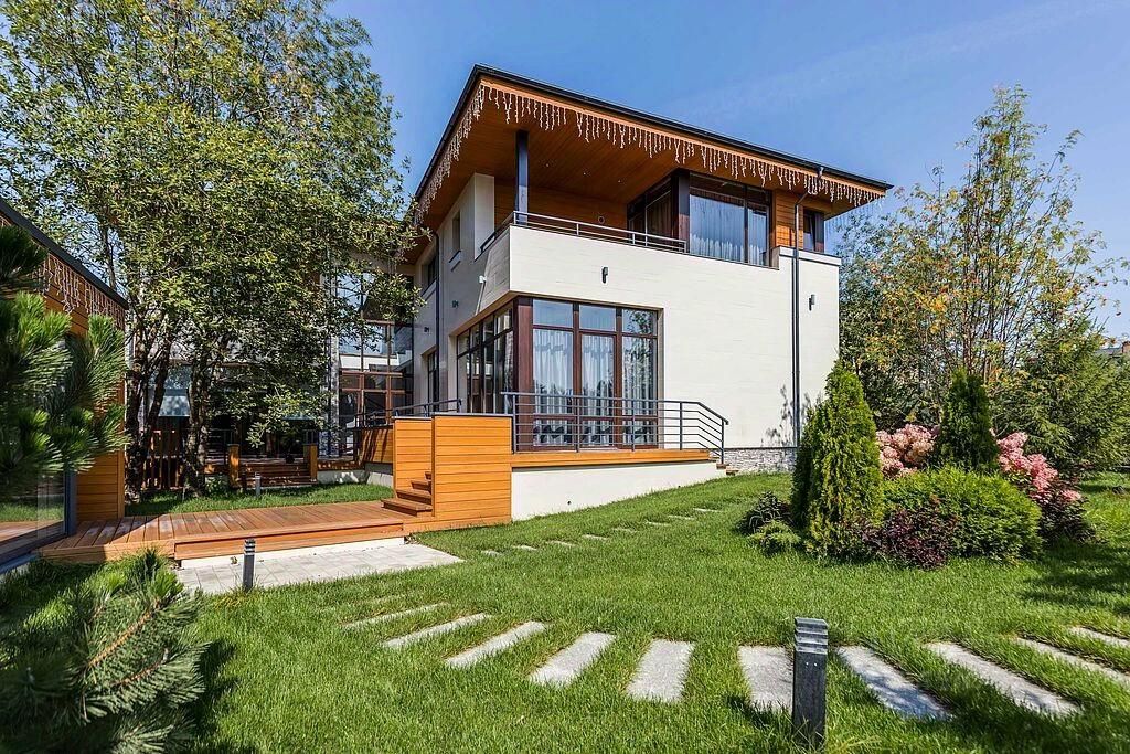 ID 7865. Этот великолепный дом расположен в элитном коттеджном посёлке Никольская слобода на Новорижском шоссе, всего в 8 километрах от МКАД