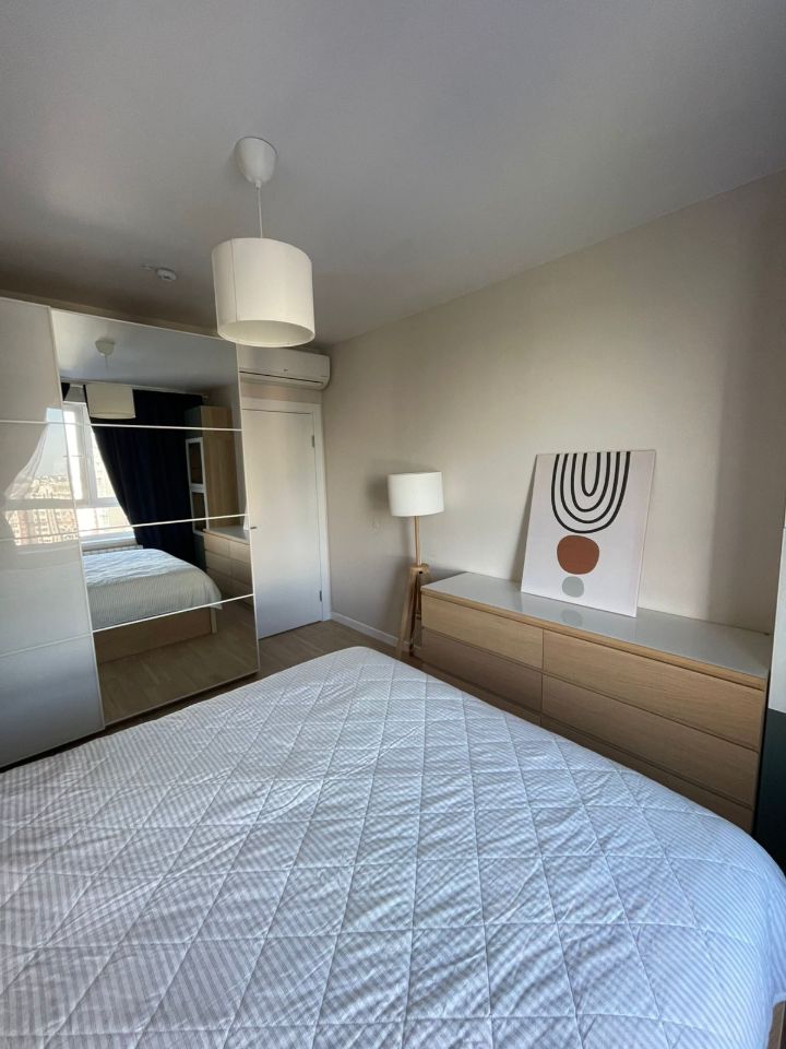 Предлагается современная евротрешка (две изолированные комнаты и кухня-гостиная)! Удачное расположение в микрорайоне - рядом лесной массив, далеко от дороги, около дома детские и спортивные площадки. Район с развитой инфраструктурой (школы, д/сады, торговые центры и т.д). Просторный чистый подъезд без ступеней, приличные соседи. Высокий этаж, окна во двор (на запад). Квартира после качественного ремонта (заменены двери, полностью переделан санузел с установкой тёплого пола и заменой коммуникаций, установлены 3 кондиционера, заменены все радиатры отопления на Rifar и т.д). Квартира оборудована встроенной кухней с техникой ИКЕА (производства Италии). Мебель в гостиной и спальне остаётся покупателю.