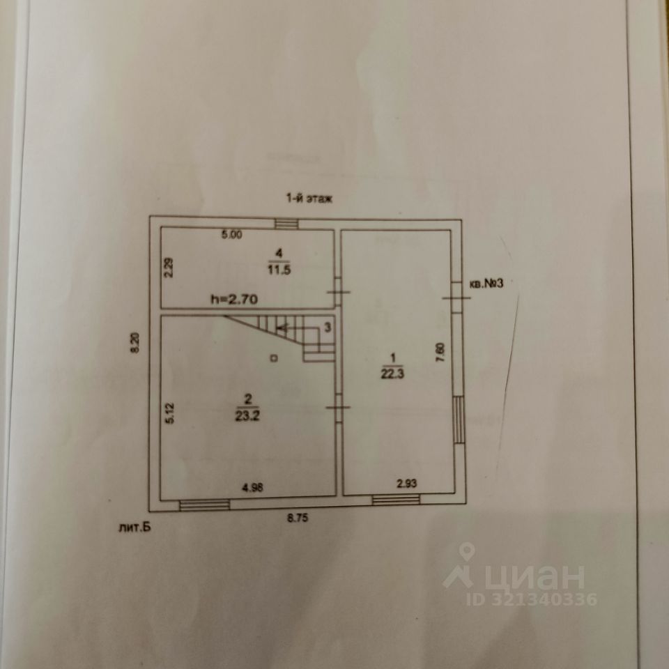 Первый этаж-ванная, санузел, кухня, гостиная. Второй этаж- 3 спальни, санузел