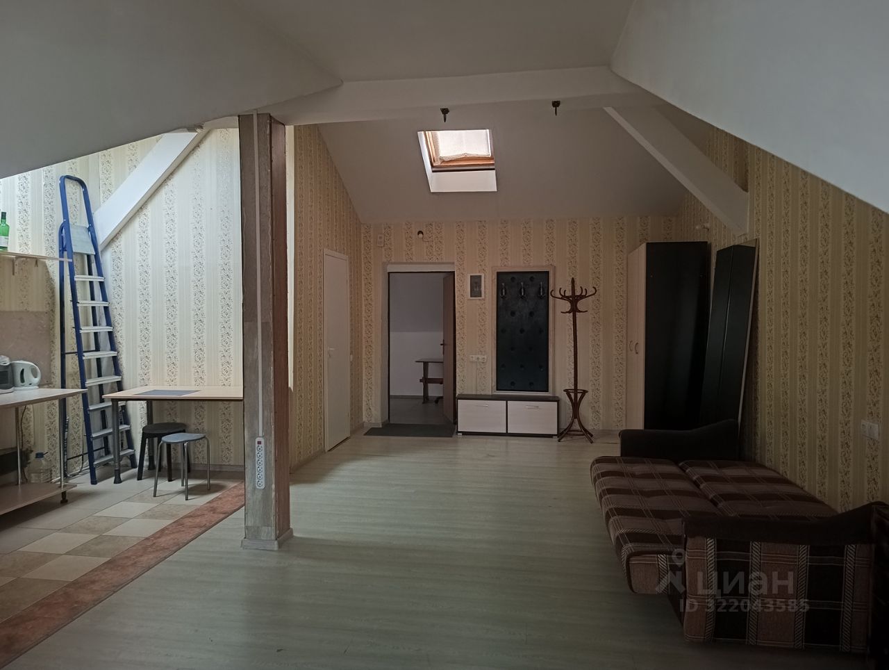 Продаем однокомнатную квартиру свободной планировки на 4 этаже четырехэтажного дома. Квартира расположена на мансардном этаже. Общая площадь 43,4 кв м. Общий санузел. В квартире одно полноценное окно и два небольших (в крыше). Окна во двор.