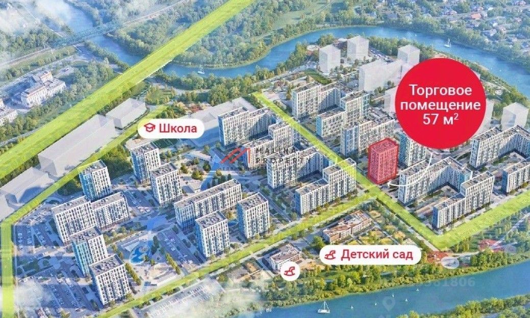 Продажа торгового помещения 57 м2 в г.о. Домодедово, с. Ям, жилой комплекс Прибрежный Парк, корпус корпус 8.1 (20 минут транспортом от метро Домодедовская).