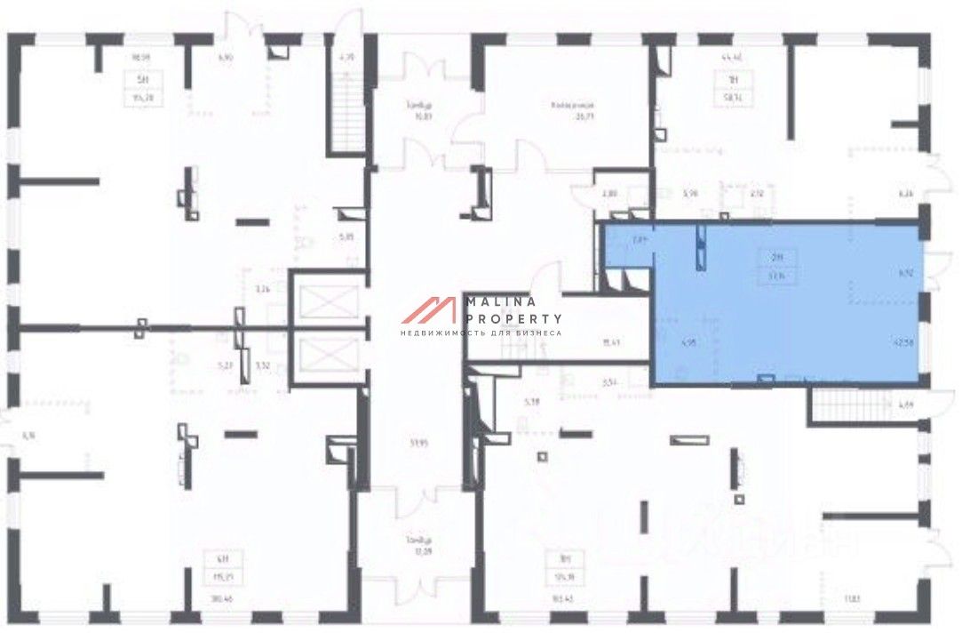 Помещение 57 м2, располагается на 1 этаже, открытая планировка, отдельный вход с фасада, высота потолка 3 м, витринные окна по фасаду. Электрическая мощность 25 кВт. Парковка перед фасадом. Место для размещения рекламы.