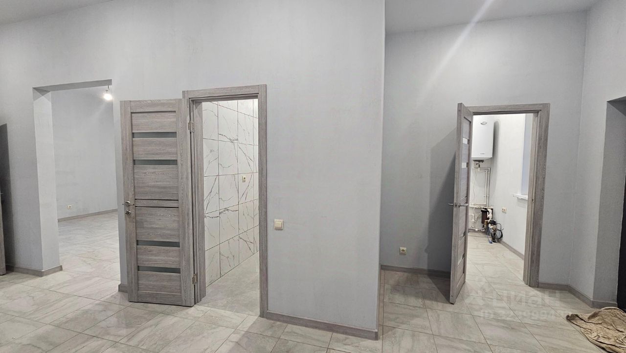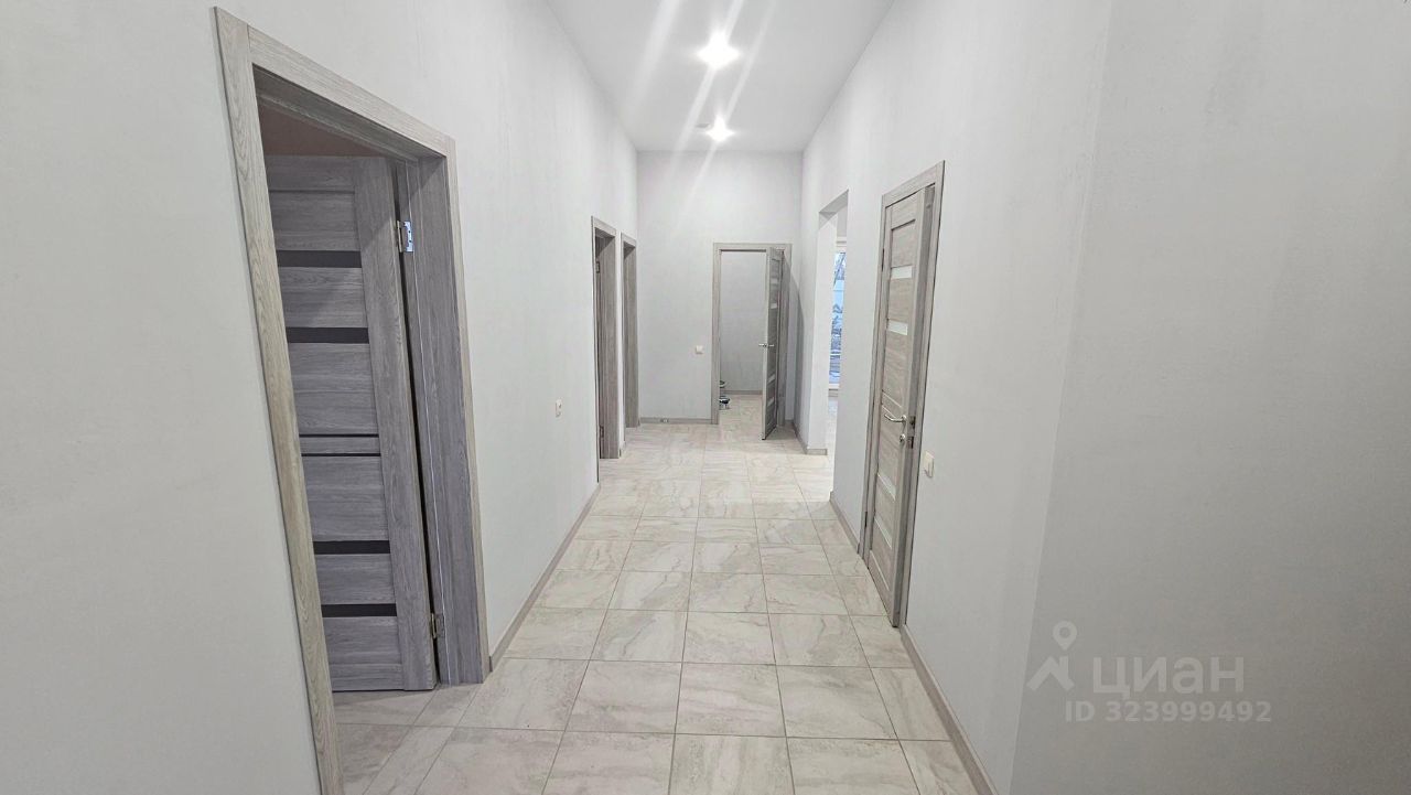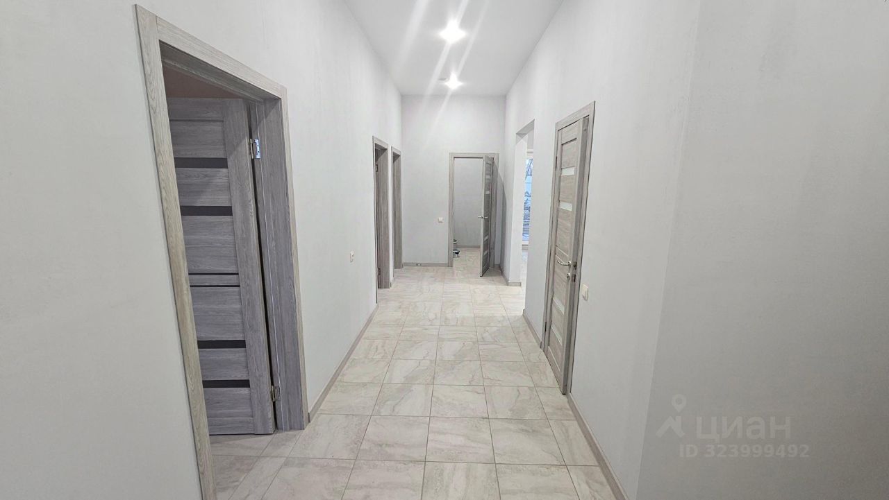 Одноэтажный дом от сертифицированного застройщика, площадью 120 кв.м. Конструктив: из газоблоков, оштукатурен, декоративная штукатурка короед, окрашен. Фундамент бетонная армированная плита, отопление от электрокотла. Вода - скважина, канализация септик. Электричество 15 кВт, три фазы. Окна пластиковые двухкамерные. Крыша металл-черепица. Водостоки. Дом сдается в эксплуатацию с полной внутренней отделкой: стены оштукатурены, окрашены, натяжные потолки, точечные светильники, межкомнатные двери, система теплый пол + керамо-гранитная плитка, сантехника в сан.узле.