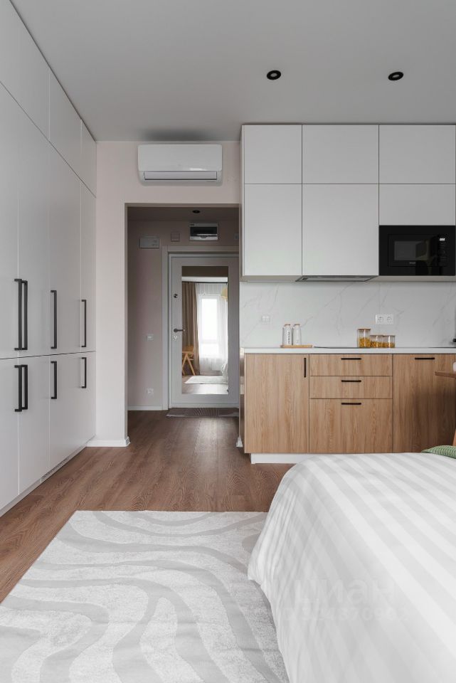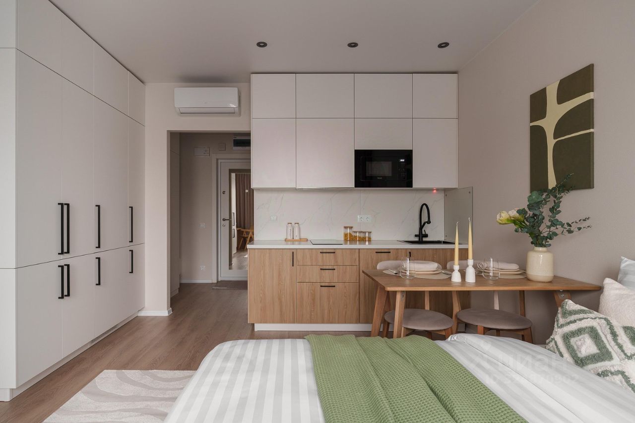 Квартира только после ремонта, никто ранее не жил. Площадь — 23,2 м², 11 этаж из 25. Окна выходят на улицу. В квартире есть всё для комфортной жизни: большая двуспальная кровать, полноценный холодильник с морозильной камерой, стиральная машина, посудомоечная машина, кондиционер, микроволновка, Wi-Fi.