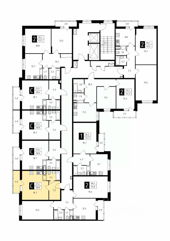 Продаётся студия в строящемся доме (Корпус 1), срок сдачи: 1-кв. 2026, общей площадью 28.80 кв.м., на 5 этаже.