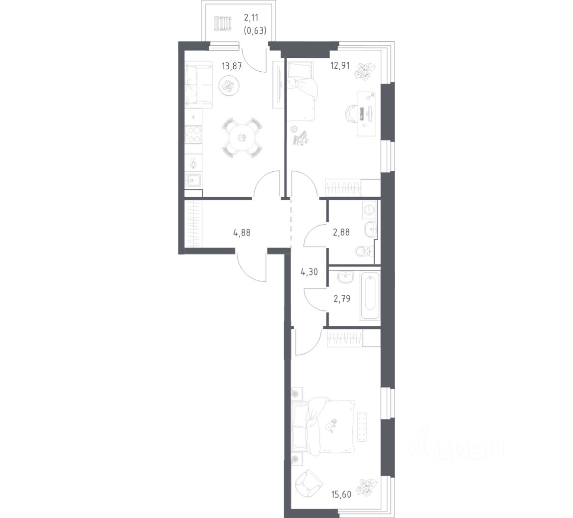 Строим кварталы для жизни с заботой о будущем. Предлагается 2-комнатная квартира комфорт-класса площадью 57,86 кв.м в корпусе 19 на 3-м этаже, в жилом комплексе ''Пригород Лесное''.