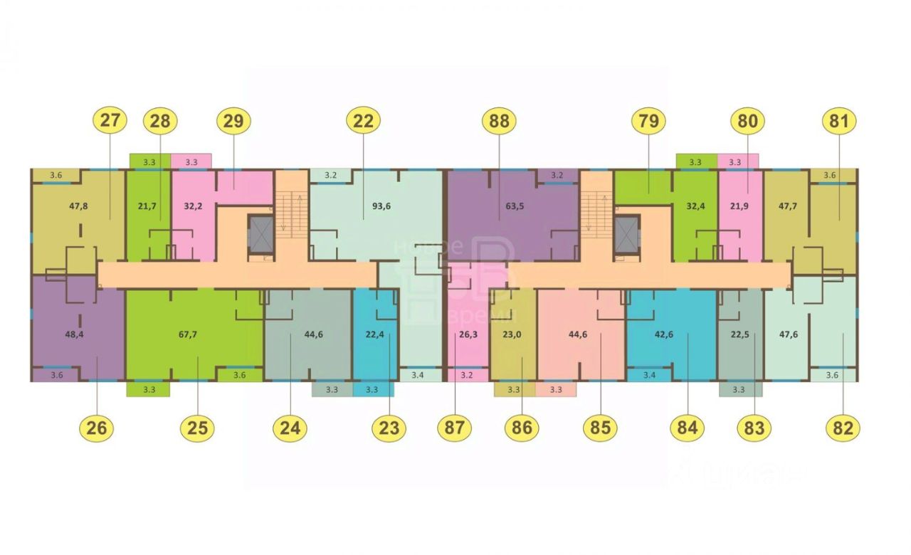Описание квартиры: - номер квартиры - 85 - площадь 44,6 кв.м. - этаж 4 - свободная планировка