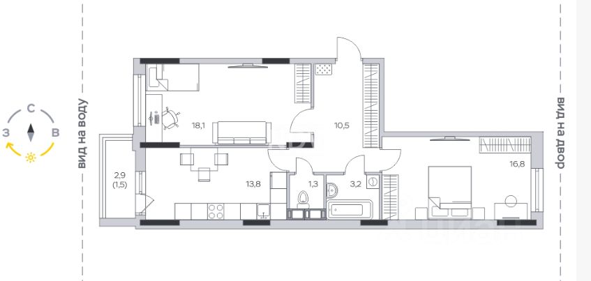 Лот 48925447. Продаётся просторная Евро трех комнатная квартира без отделки в современном ЖК ''Пироговская Ривьера''. Кухня 13.8м2, комнаты 18,1-16,8. Застекленная лоджия из кухни. Воплотите свои дизайнерские возможности в жизнь! Состояние и планировка: •Перегородки уже возведены. •Сантехнические коммуникации разведены в санузле, ванной и на кухне. •Высокие потолки 3.1 м. •Панорамные окна с видом в сторону пляжа. Инфраструктура ЖК — всё включено: •Детские и спортивные площадки в каждом дворе. •Детский сад, школа, взрослая и детская поликлиники. •300 метров до собственного оборудованного пляжа с зонами отдыха. Транспортная доступность: •20 минут на рейсовом автобусе до м.