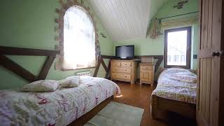 О ДОМЕ: Дом построен в 2008 году, спроектирован из энергоэффективных материалов. Дом предназначен для круглогодичного проживания с возможностью прописки. Интерьер в замковом стиле. Много деталей из ковки, фактурная штукатурка, массивные светильники. Полы - массив дуба, потолки - лиственница. Капитальные стены внутри сделаны из пеноблоков , облицовка - кирпич, крыша - мягкая финская черепица, фундамент - монолитный. Материал окон - пластик под дерево. В дом заведены все коммуникации. Вода - скважина, магистральный газ, канализация септик топаз-лонг. Проведен WI-FI, телевидение. Система фильтрации воды. Генератор на случай отключения электричества, который автоматом включается через 3 мин, продумано всё для комфортной жизни загородом. Мебель и технику, включая весь садовый инвентарь и технику остаётся в подарок новым хозяевам. Функциональная планировка: На 1 этаже: просторный холл с эркером и старинными часами, гостиная с камином, кухня , бойлерная с гостевым туалетом. На 2 этаже: спальня с огромной кроватью 2Х2, гардеробная, две детские комнаты, большая ванная с двумя окнами, кабинет. ГОСТЕВОЙ ДОМ: Бревенчатый двухэтажный дом с террасой и летней кухней, общей площадью 150 кв.м. Интерьер в стиле шале с элементами кантри. На 1 этаже: гостиная с большим столом и кухней, баня, ванная комната. На 2 этаже: спальня с двуспальной кроватью, просторная гостиная с балконом. На территории ухоженный сад с кедрами, елями, канадскими дубами, фруктовыми деревьями и ягодными кустарниками, альпийская горка.